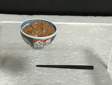 丁度、ガチャの牛丼ミニチュアを手に入れてたし。