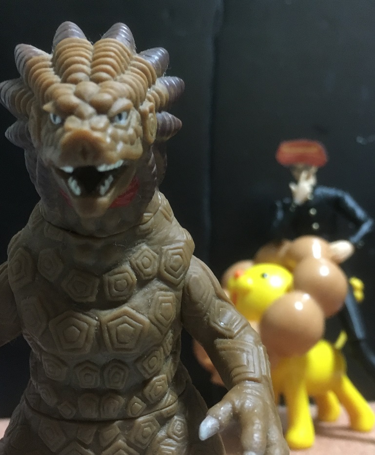 坂本達よりも背が低く、どこか愛嬌があるキャラということから、現行の怪獣ソフビを使用することに。