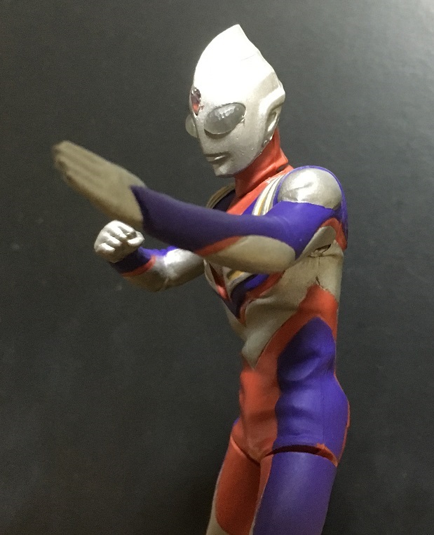 マルチ・パワー・スカイの3つのタイプチェンジで色が変わるという、当時だと斬新な設定が導入されたティガ。基本タイプのマルチは、パワータイプの赤とスカイタイプの紫の両方があるのですが、この商品ではバッチリ色分けされています。