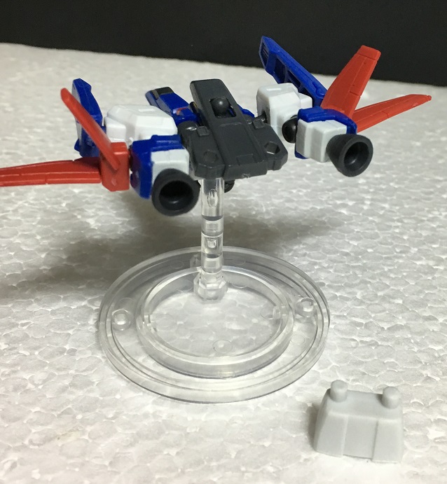 コア・ブロックが見えないアングルで撮影し、横にコア・ベース付属のネオ・コア・ファイターを並べました。分離したコア・ブロックが変形し、離脱に入っているっぽく。