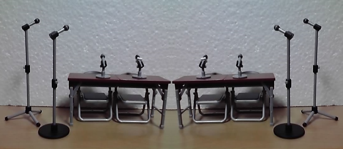第1弾はパイプ椅子とそれを載せる台車、第2弾では長机が追加されましたが、今回はマイクセットが追加されました。