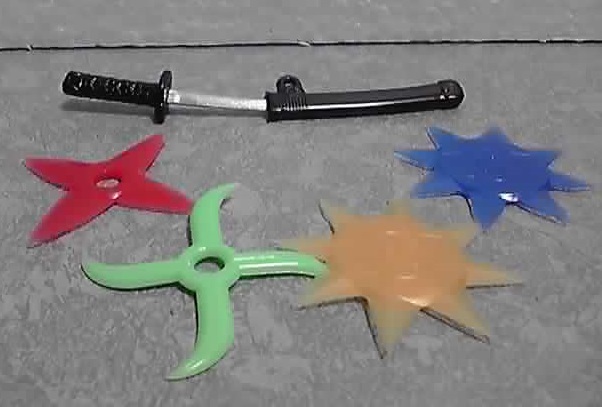 私は今回(といっても、画像を撮ったのが去年の1月ですが)、手裏剣セットと脇差し(鞘付き)が当たりました。100円で気軽に買えるので、気が向いたらまた回してみよう♪
