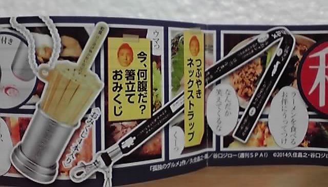 「つぶやきネックストラップ」はともかく、「看板ライト」と「今、何腹だ?箸立ておみくじ」はフィギュアと絡めるのに使えそうだから当たって欲しかったですね。