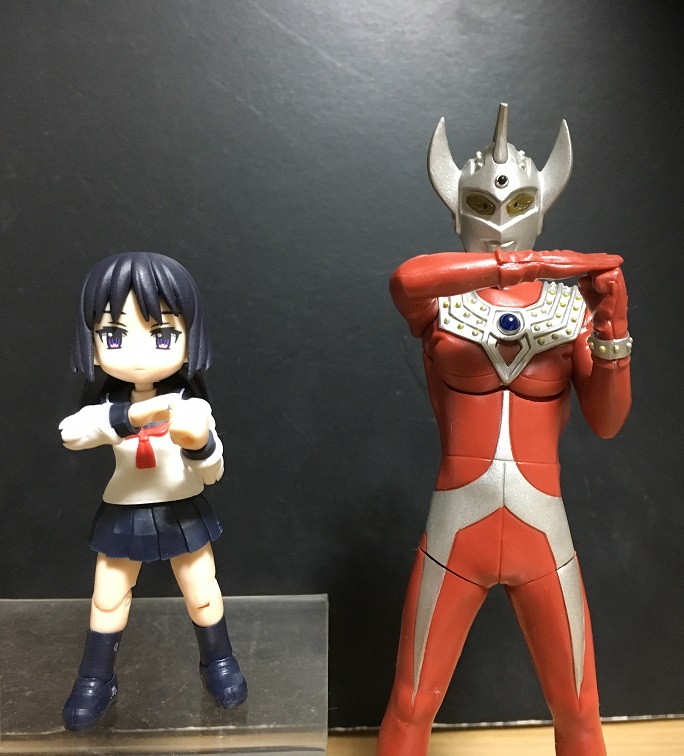 アクシューちゃんと目が合ってるタロウの写真を見て、タロウもアクションフィギュアなのかと思ってしまったっ!アクションフィギュアとポーズ固定フィギュアを組み合わせてブンドドしても楽しめるのかもと感じましたよ。
