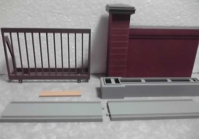 ゲートが1個、そのゲートを乗せるレール部分が2つ(連結可能)、壁が1個、壁の土台部分も1個、壁の柱部分に付ける校名プレート1枚。これに、前述の立て看板(イラスト)と、↓で紹介するシールで1セット分となります。