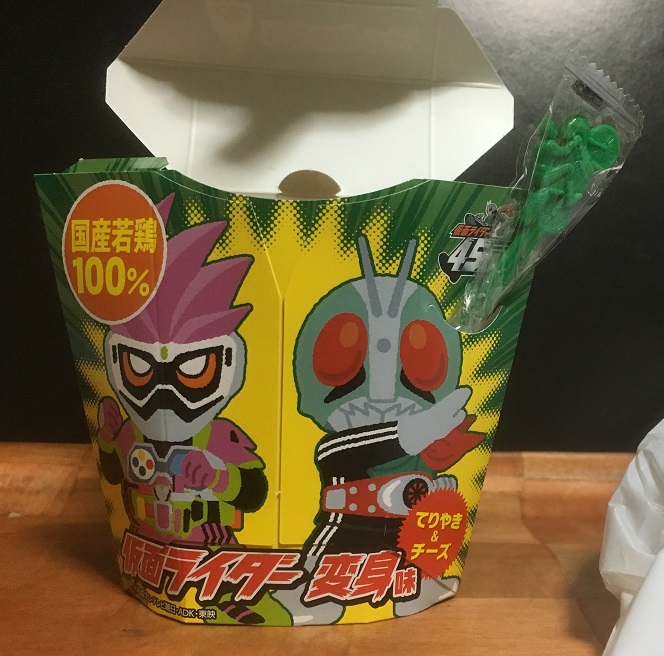 ただ今ローソンでは「仮面ライダー」シリーズ45周年記念を祝してキャンペーンが行われており、その一環として「からあげクン 仮面ライダー変身味(てりやき&チーズ味)」が去年の12月27日より発売されています。216円(税込)。