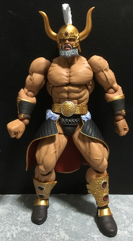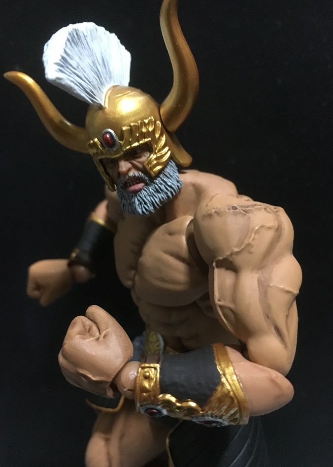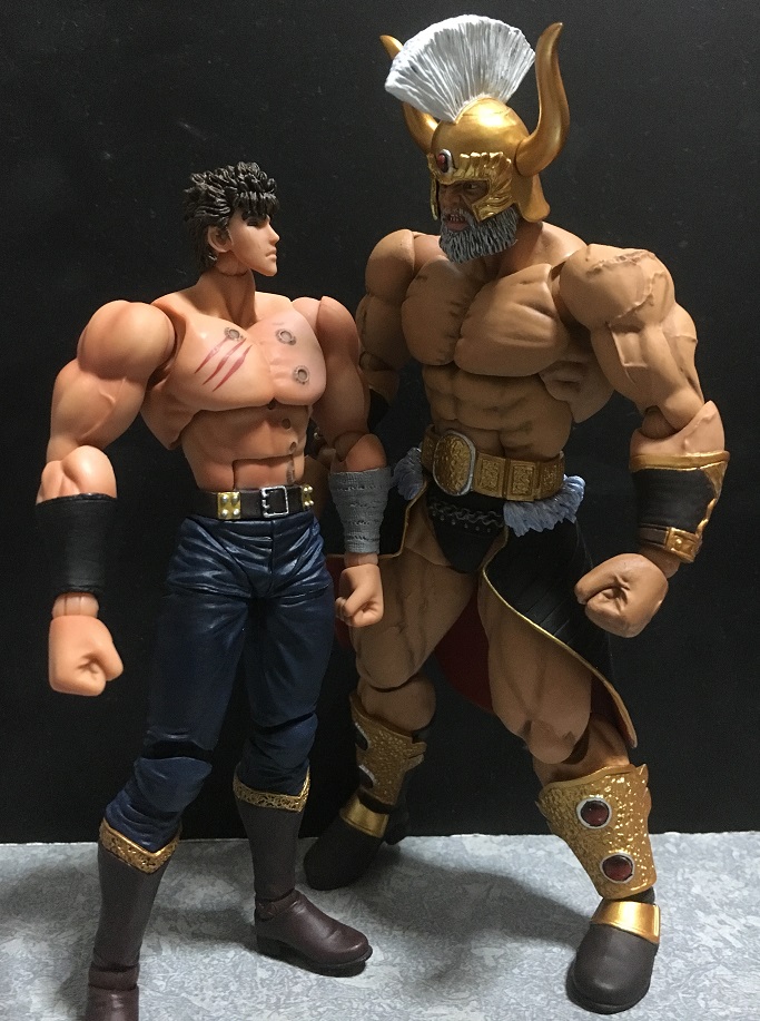 パンツ一丁の姿なのに兜とブーツ、マントはちゃっかり付けてる筋肉ムキムキの巨漢のオッサンのフィギュア。『北斗の拳』を知らない人が見たら、なんか誤解されそうです(^^;)