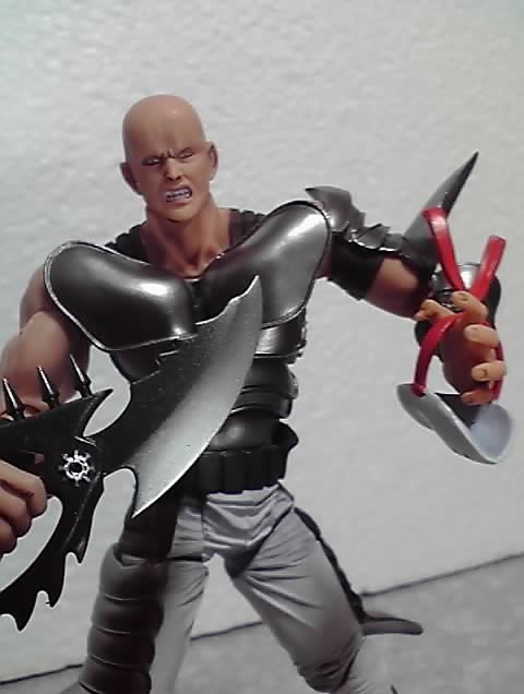 スキンヘッド、仮面なし、鎌装備で、「カイオウ滅殺隊」所属の修羅になります。ただし漫画では、両手に鎌を装備してました(-_-;) つまり2つ買えと…(--;)