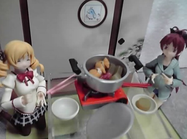 中身は、カセットコンロ、鍋と蓋、おでんの具がいろいろ、箸×と茶碗が2組み、そしてテレビのリモコン。リモコンだけ浮いてますが、「団らん」ということで、テレビのある部屋で鍋をつつきながらテレビ番組を見るって感じなのでしょう。