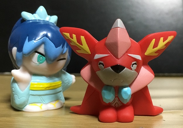 あつガルルは以前にも発売してますが、今回ふぶき姫とセットということで、寒くてうずくまってるポーズになっています。名前のとおり「暑がり」の彼も、ふぶき姫と一緒にいるとガチガチに凍えます。というか、凍り付きます。