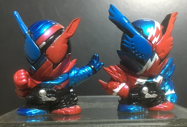 前作『仮面ライダーエグゼイド』の仮面ライダーエグゼイド(アクションゲーマーレベル2)と並べてみました。今公開中の映画『仮面ライダー平成ジェネレーションズFINAL』などで共演しています。
