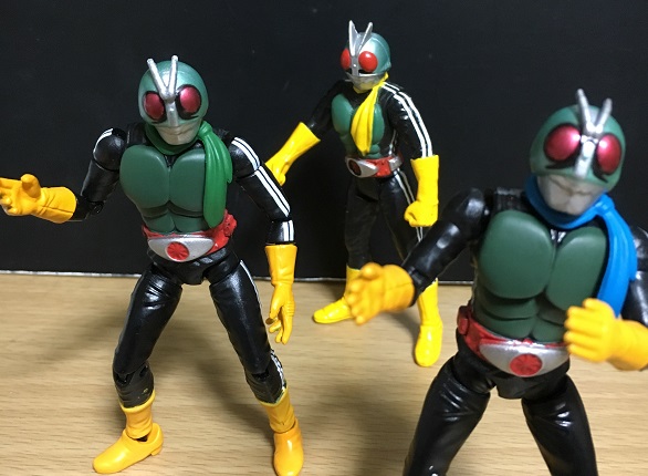 ↑の画像が景品化されたライダーですが、旧1号&旧2号、タックル、シャドームーンにショッカーライダーNo.1までいるという賑やかなラインナップです。惜しむらくは新2号が何故か無いことで、歴代集結をしようとしても締まりが悪いんですよね。まあ新1号か旧2号をもう1体用意して、リペイントするという手もあるでしょうけど。