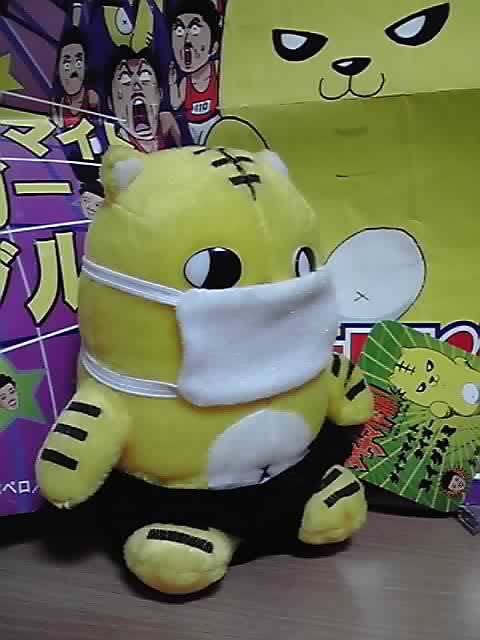 画像は『ダイナマ伊藤!』のムガトラが風邪予防の為にマスクを付けた姿のぬいぐるみ景品です。