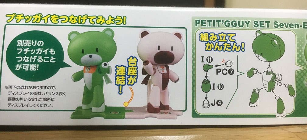 内容的にいうと、この前のレッドやブルーと同様の色違いのプチッガイが大箱に2セット同梱されているという代物。