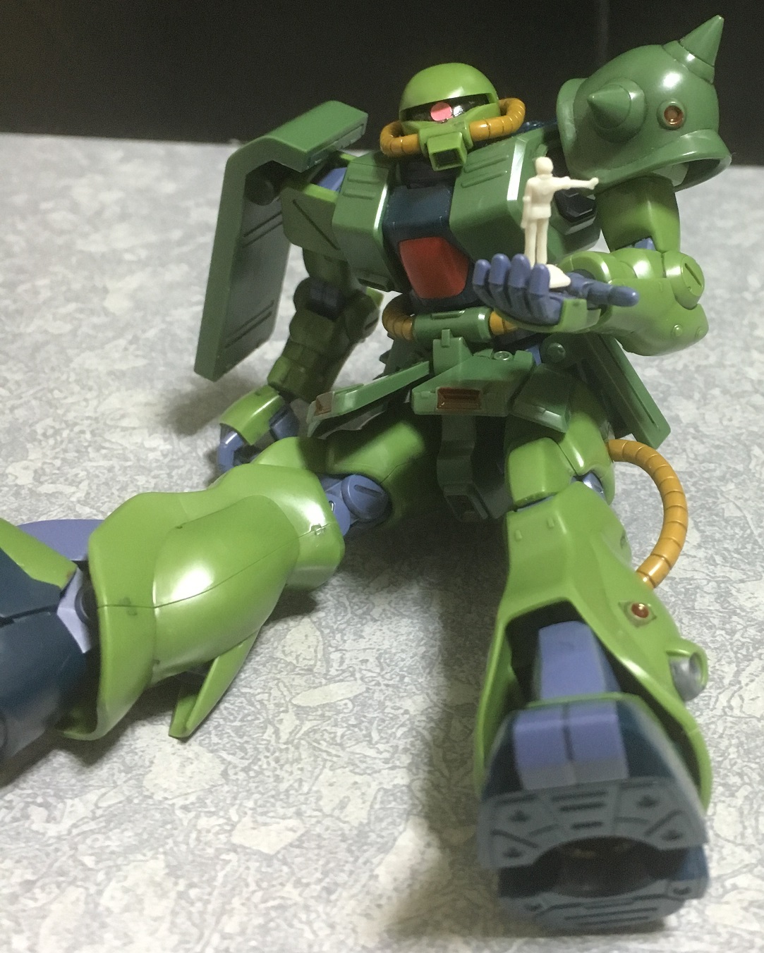 1パーツのみの構成だから緑一色だったのですが、刃の部分やパイプをガンダムマーカーで塗りました。