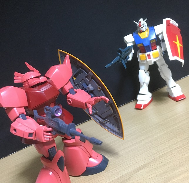 「if画像さ。高性能ながらヤラレ役にあまんじなければならなかったシャアゲルググが忍びないので、ガンダムに勝利した図を撮ってみた」
