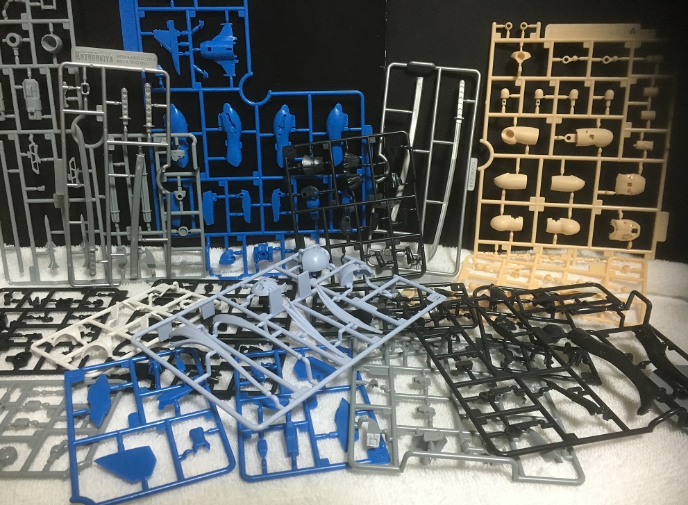 なお、顔パーツと手首パーツはランナーに付いていないパーツ単独の状態で、前者はアイプリントの保護のため、後者は小さいから紛失を防ぐため、今回は洗浄していません。