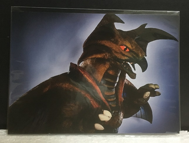 前回のザンドリアスと同じく、『80』当時のオリジナルに比べて色が明るめで、造形も愛嬌あるアレンジになってる(ように見える)新生ノイズラーですが、この写真では赤い目がギョロっとして、怪獣らしい怖いぐらいの迫力。ノイズラーの特徴である大きな耳や翼が目立たないので、このアングルの画像は貴重かも?