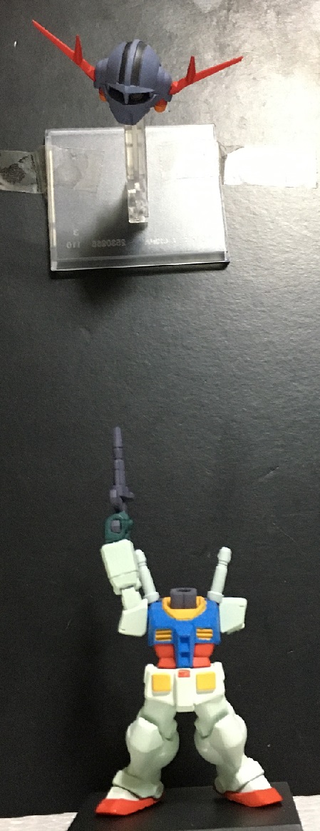 尚、「#22」のガンダムとジムのランドセルに互換性は無いので、正面から見たらそれっぽく見える位置にセロテープを使って取り付けて誤魔化しています。