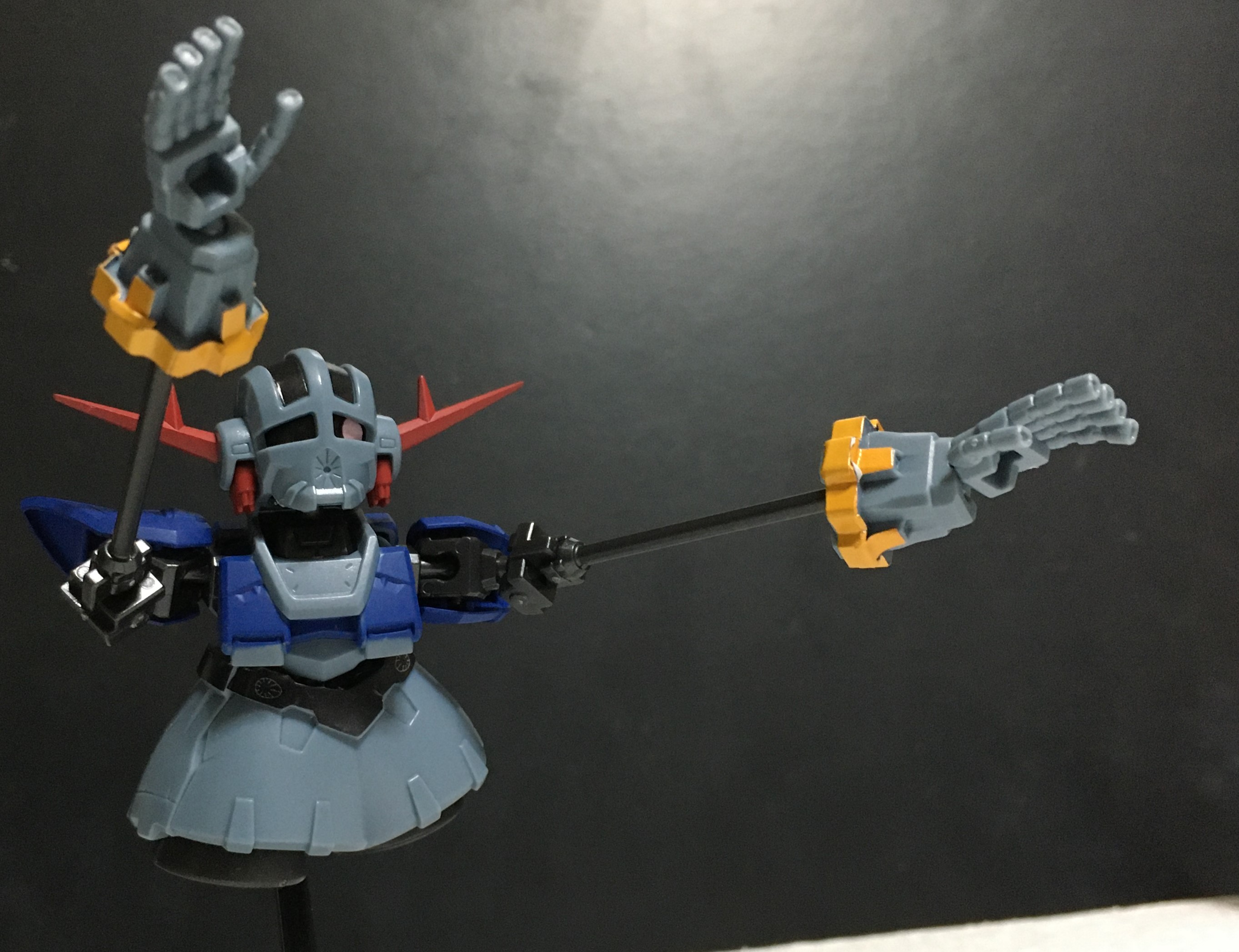 グフもそうですが、指が砲身になってはいますが別に可動しないわけではないので、握り拳にできます。