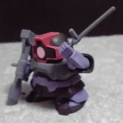 ザク・マシンガンとヒート・ホーク装備で、固定武装が施されていないMS-07A グフ(初期量産型)っぽく。