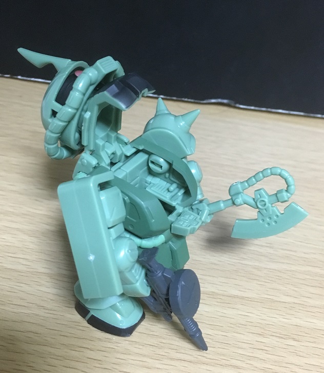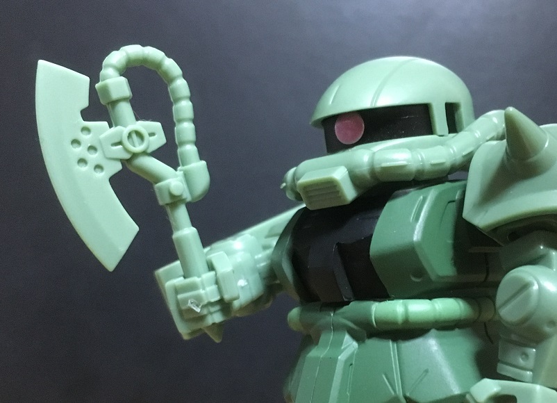 成型色はザク本体と同じなのですが、黒く塗装されているのがありがたい。