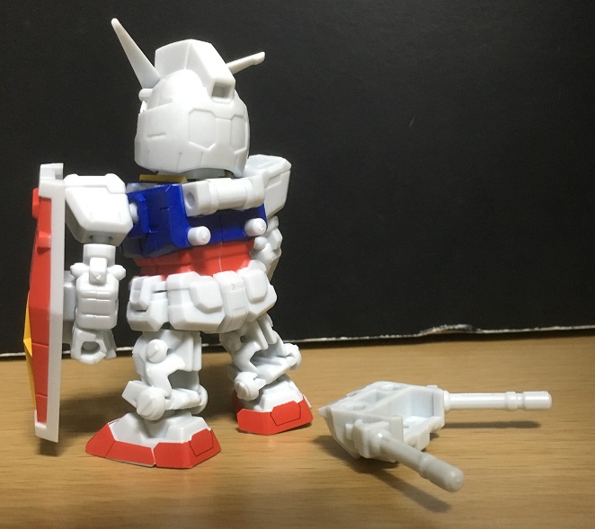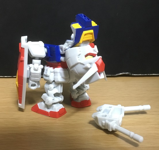 ガンダムの場合、背中のランドセルをはずした方が乗せやすくなります。(はずす際は破損に注意)