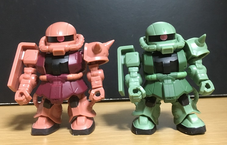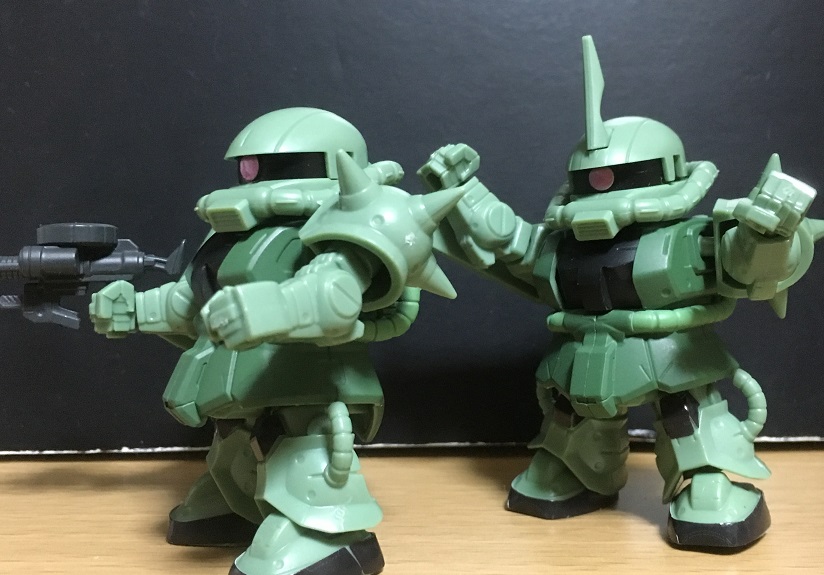 そういえば、2種のザクを同じ状態で並べた画像は貼ってなかったな。