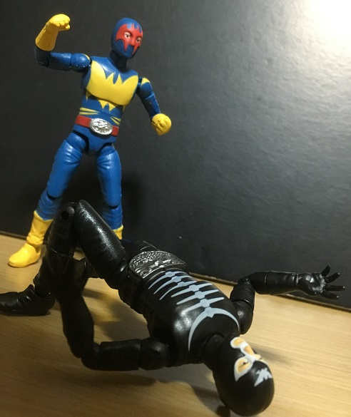 劇中ではゲルショッカー第1の怪人・ガニコウモルがショッカーの戦闘員達を、第2の怪人・サソリトカゲスが科学者達を抹殺したのですが、戦闘員同士の戦いもあったのでは? と思って↑の画像を撮ってみました。
