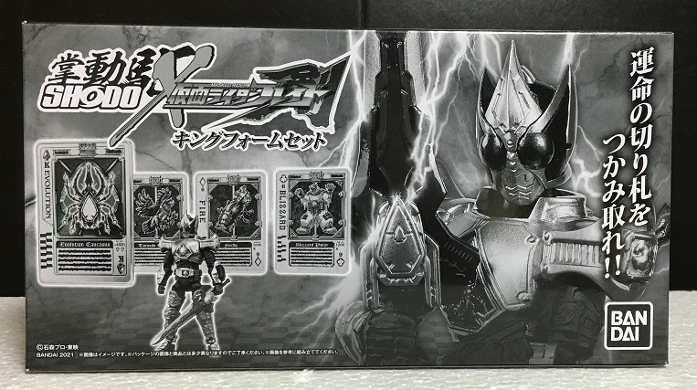 キングフォームのカードの他、ギャレン、カリス、レンゲルが使うカードもあるので、「SHODO-O」で発売された3ライダーの拡張セットの要素もあります。