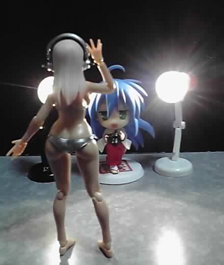 S.H.Figuarts カメラ男がすぐ出せる所に無かったので、今回は泉こなたに撮影係をやってもらいました。撮影会なら写している人が1人というのはヘンだし、グラビア撮影なら周りにレフ坂持ったスタッフとかがいないとヘンだろって感じですが、細かいコトは気にすんな!