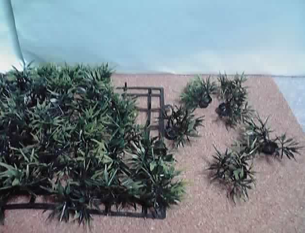その使い方はこれまでもしてきたのですが、最近になってイミテーションの草が1束ずつ外れることに気づきました。荒れた大地にわずかに残った草とか、木を作った際に葉っぱとして使うとか、いろいろ出来そう。