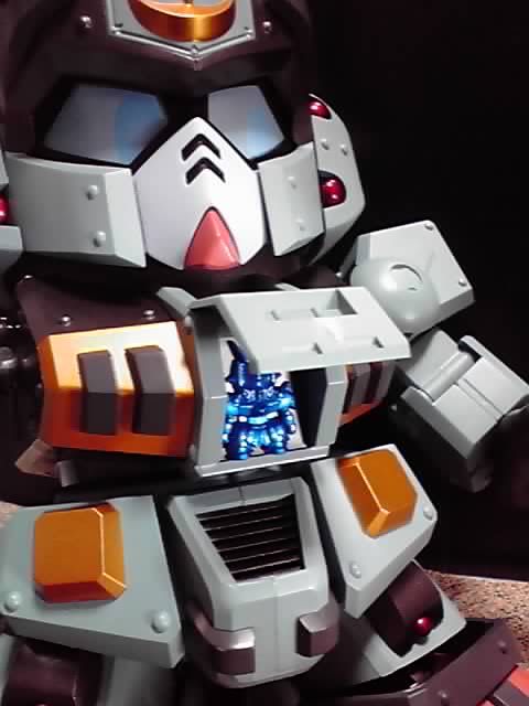設定だと灼熱騎士は胸のハッチから乗り込むわけですから、ホントは昔のガシャポン戦士よりも小さいサイズになるのでしょうが。