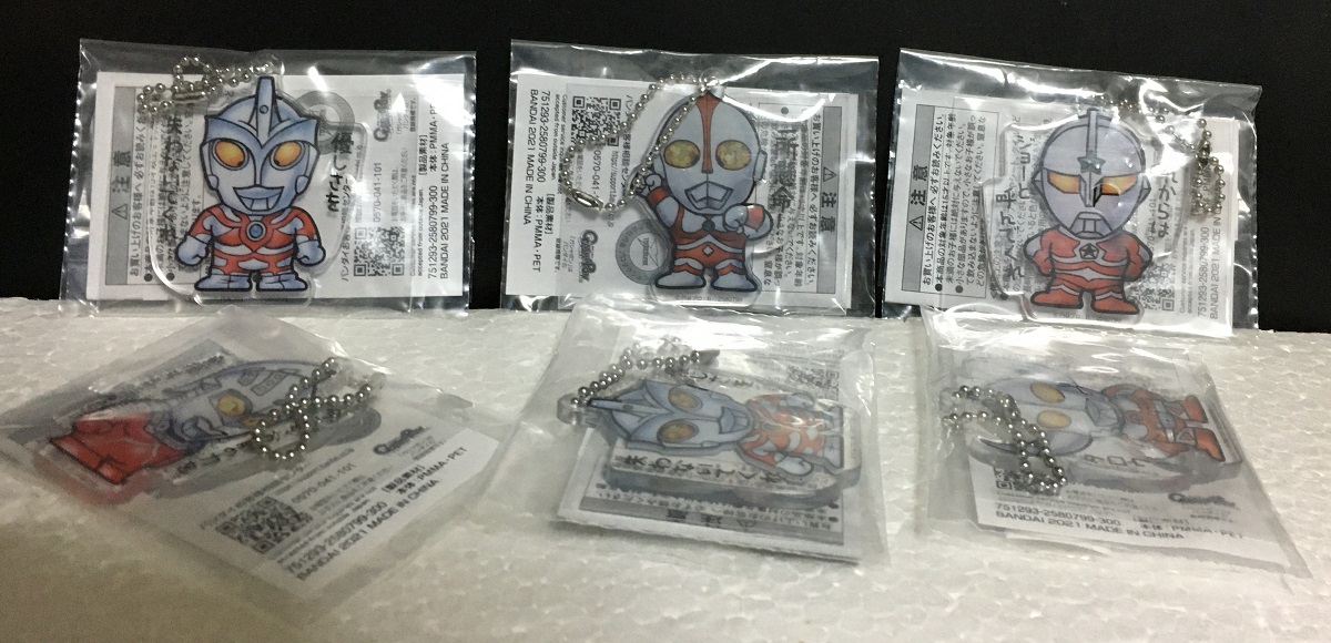 ちなみに「ウルトラマン倶楽部」のみオンラインガシャなので、全部を持っているわけではありません。でも9キャラ2パターンで全18種類の内、特に欲しいキャラはなんとか1パターンは当たりました。