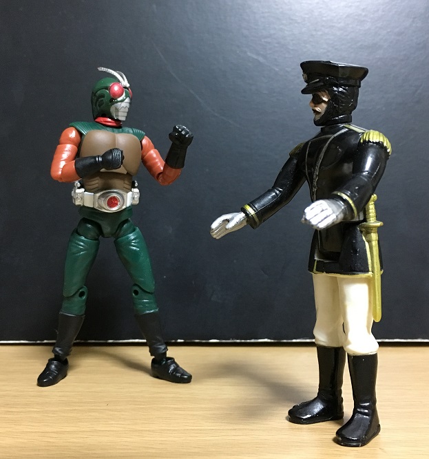 以前「SHODO」スカイライダー(強化前)と「ワールドヒーロー」ガメレオジンを戦わせました(詳しくはこちらをクリック)が、今回はゼネラルモンスターとスカイライダー(強化前)を並べてみました。