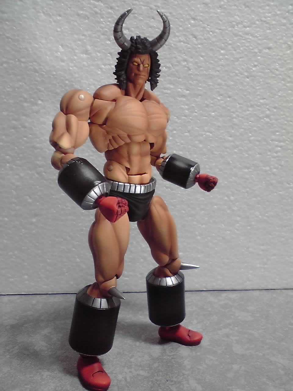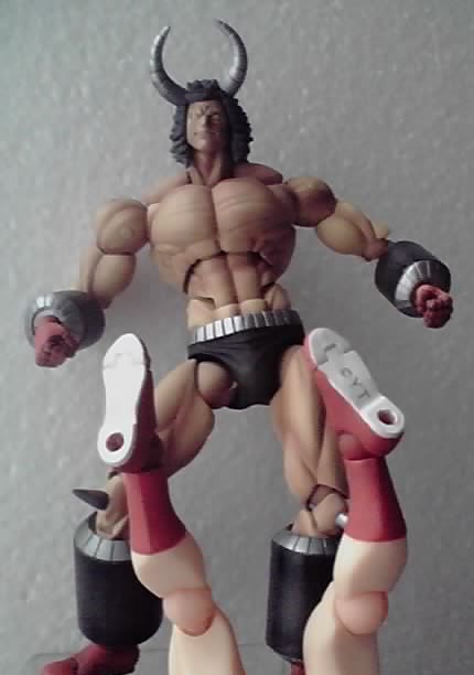 ボディをキン肉族に伝わる戦闘コスチューム着用の物と交換しています。交換するのは胸と腹、それと上腕です。しかしこのコスチュームだと、フェイスガードとマントも欲しくなる…(試合中は付けないけど)