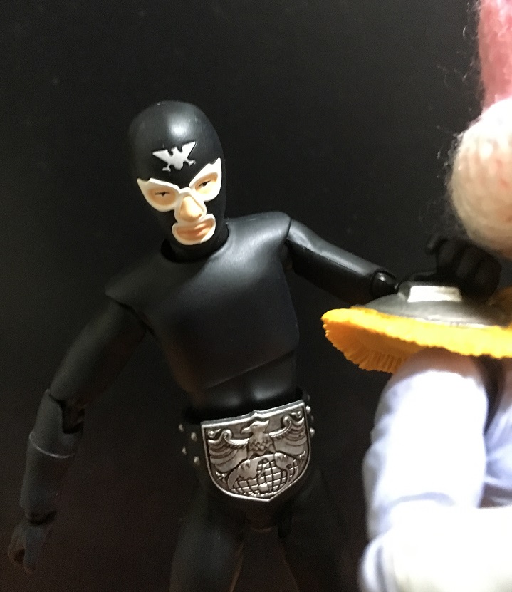 トレードマークの帽子は、百均で買ったストラップの飾り。被せることを前提にした作りではないので、よくすっぽ抜けます(--;)