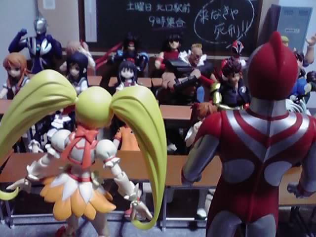 前(昨年の11月21日の記事参照)にも書きましたが、キュアサンシャインはスカートの形状のせいで椅子に座られられません(>_<) なので立っていても不思議でない、委員長ってことで1つ(^v^;)>