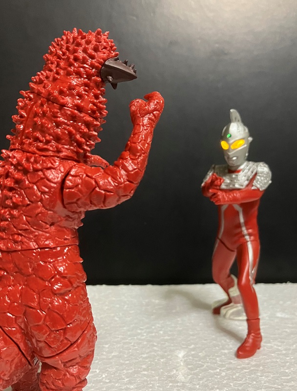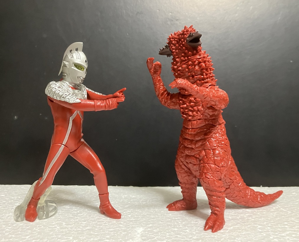 発売回数の多いセブンですが、今回はストップ光線のポーズ。今回みたいに対峙させて飾る際には見栄えが良いポーズですね。