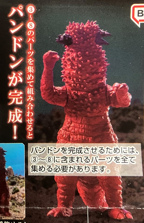 オマケとして入っているパーツを集めると、『ウルトラセブン』ラスト2話に出てくる双頭怪獣パンドンが出来るのです。