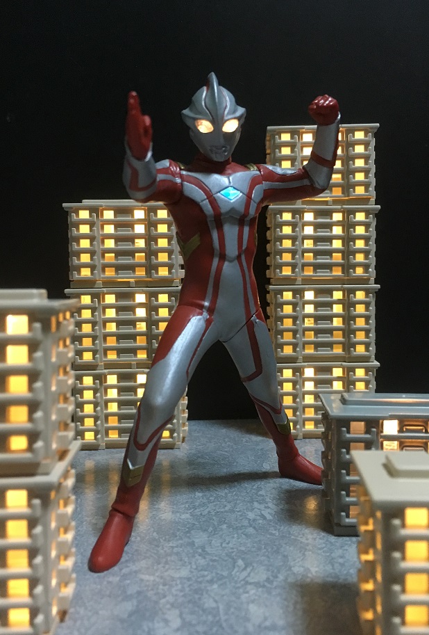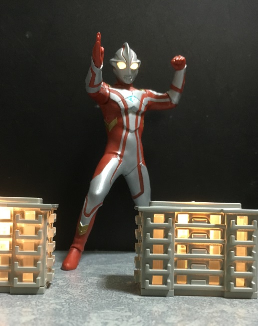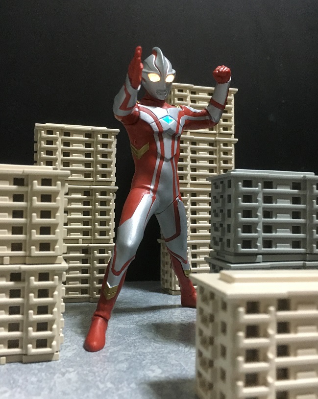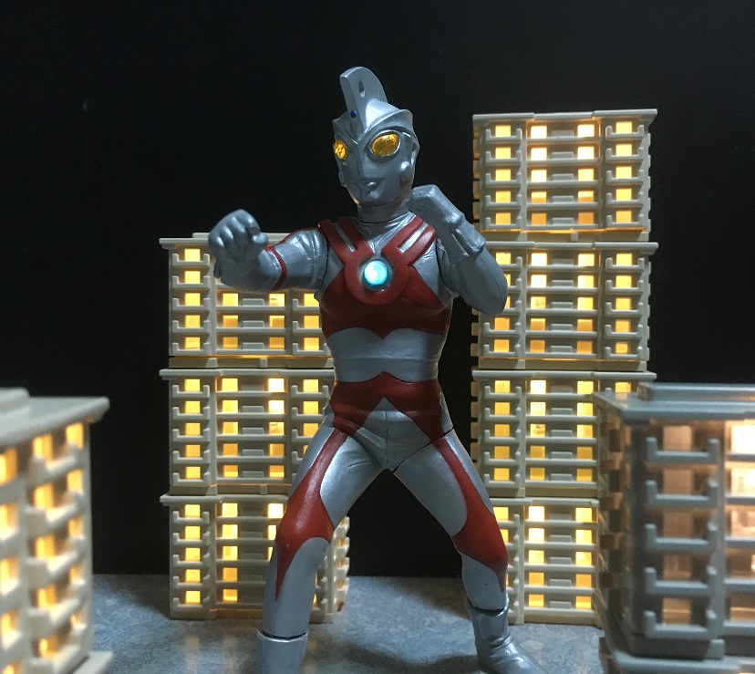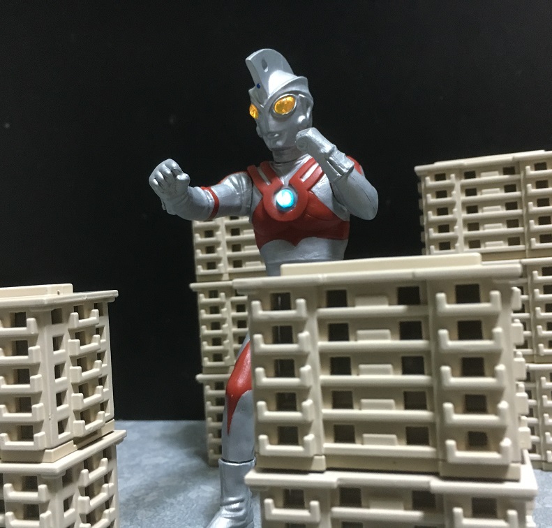 なお、メビウスが写り込んでいる画像を使っているが、これはエース単独の画像が全部、左脚の付け根がちゃんとハマってなかったからである。というか、この画像も右足首がキレイにハマってない…(-_-;)