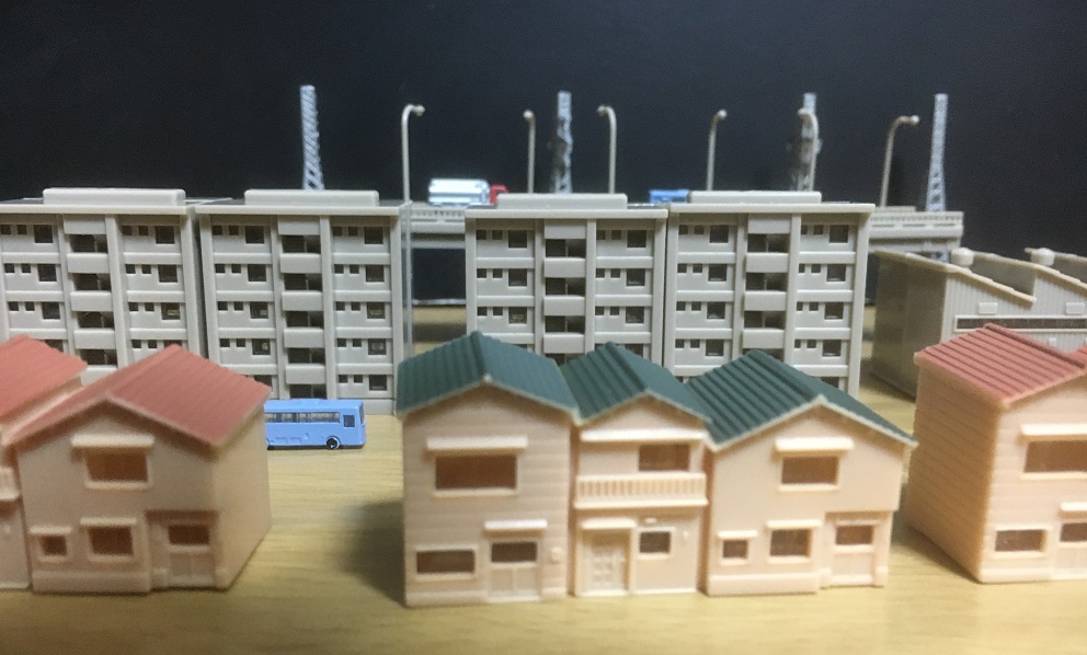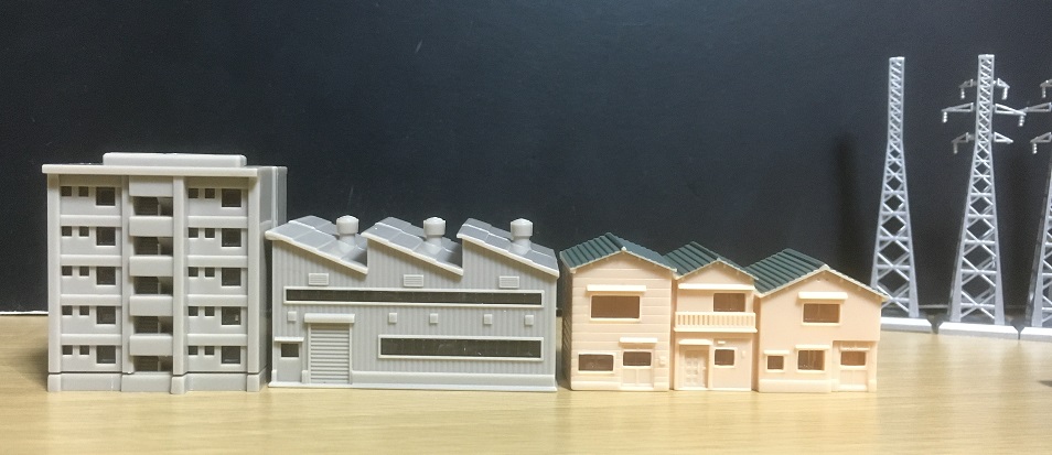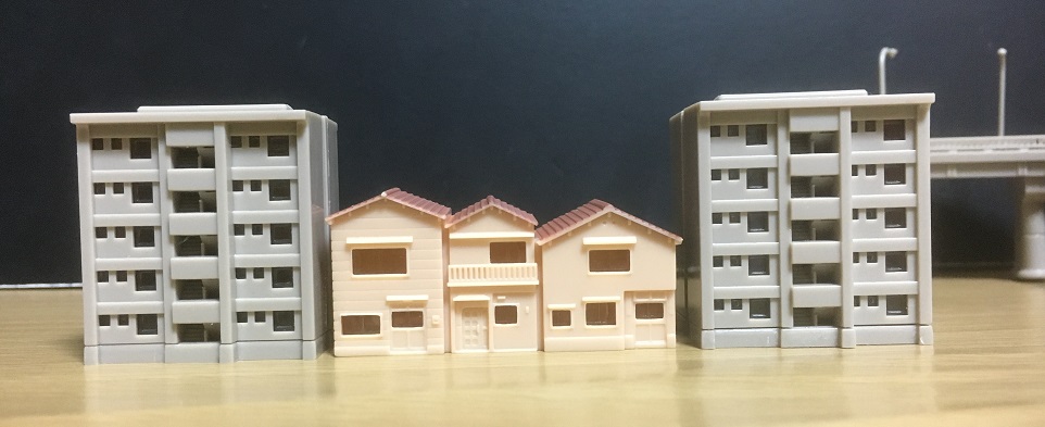 これはなかなか遊び甲斐のあるアイテムです。安価で手に入って、照明も仕込むこともできますし、造形自体はいいから拘るならウェザリングとかしてもいいでしょうしね。民家なんかは塗装をした方がいいかも。