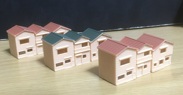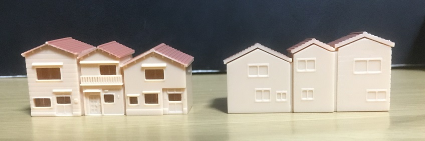 3つの家がくっついた状態で造形されているのが面白いトコロ。その3つの家は幅や高さを変えて個性づけているのですが、その組み合わせが複数あると逆にシュール(^^;)