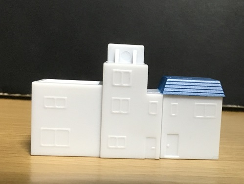 窓やドアがモールドされていたり、3棟の奥行きが違うからまっ平らでなかったりと、いろいろと見どころがあります。