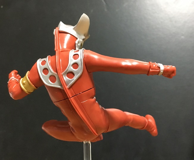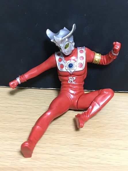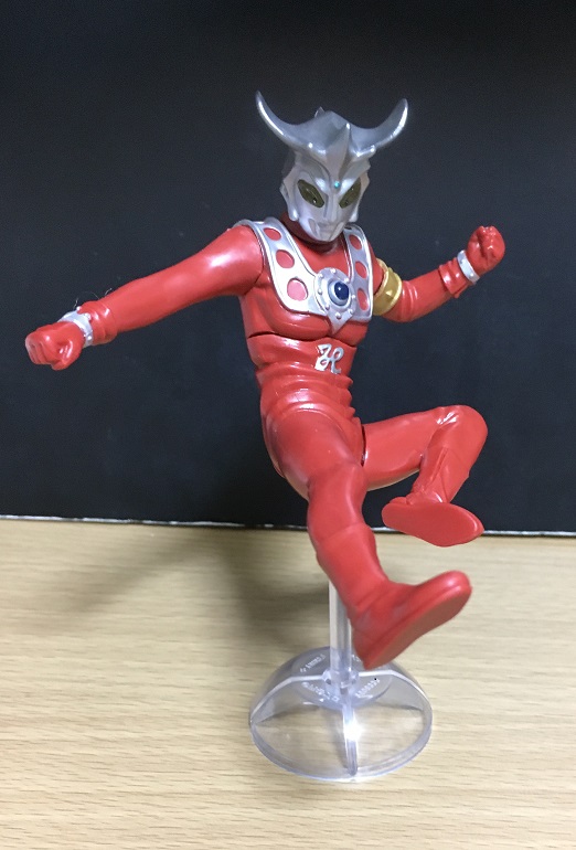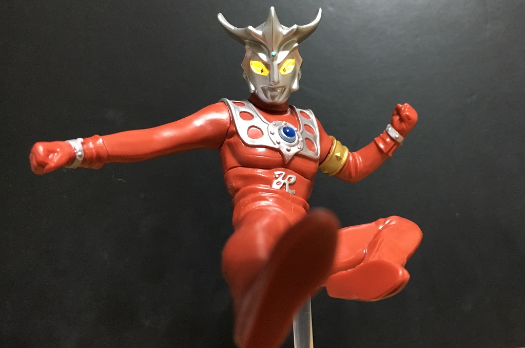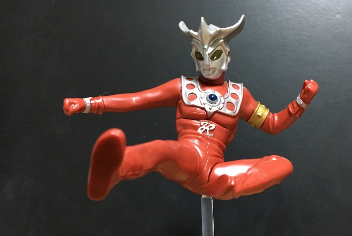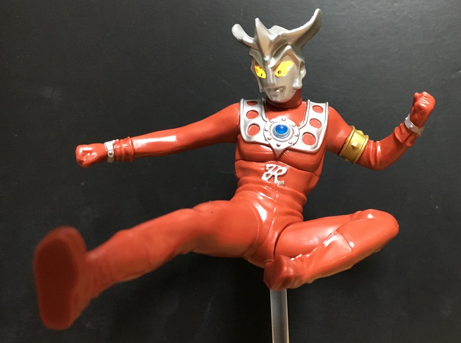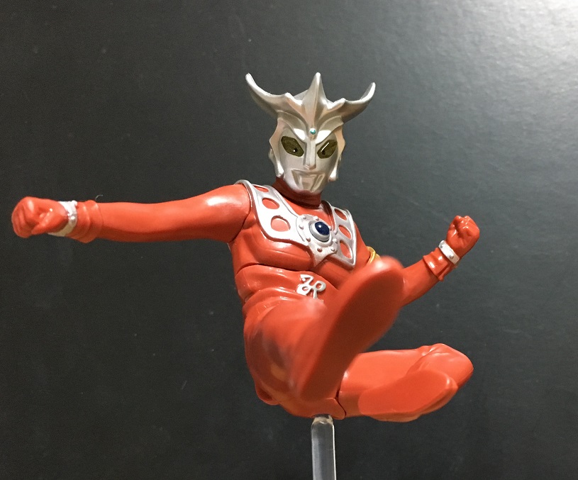 といっても前弾のタロウ、前々弾のエースのような光線技ではなく、レオキックのポーズです。