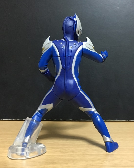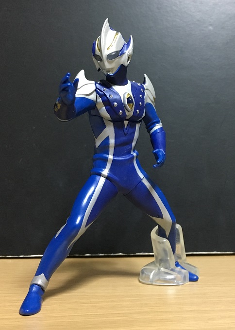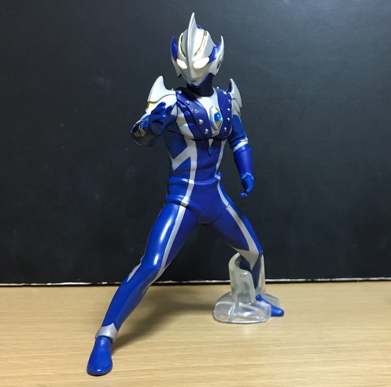 どうでもいいですが、兄弟たちと並べるとレオだけ1人で飛び跳ねている元気いっぱいのキャラっぽくなります。青と銀で暗めのトーンのカラーリングのヒカリですが、目とカラータイマーが光ることで全体が映えて見えるようになります。