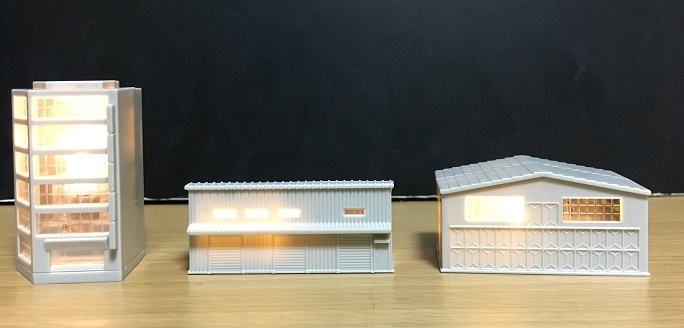 ←から商業ビル 、倉庫A、倉庫B 。