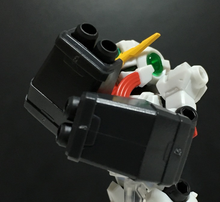 ガンダムヴァーチェのバックパックに装備された2連装ビーム砲で、使用の際に両肩の上に移動してから発射します。