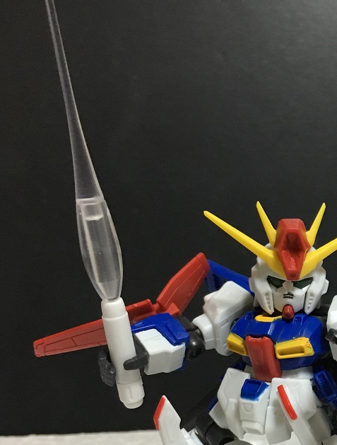 ガンダムΖΖのバックパックにあるダブル・キャノンを引き抜いて、それを柄にしてビームを発生させて完成する巨大なビーム・サーベル。武器セットの方にビーム・サーベルの刃の部分が入っているので、それをΖΖと組み合わせることで再現できます。