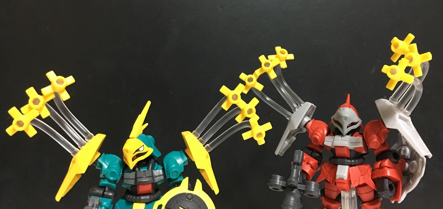 ヤクト・ドーガ2機種用のパーツ。展開状態のファンネルと、それを肩アーマーと接続させるパーツです。
